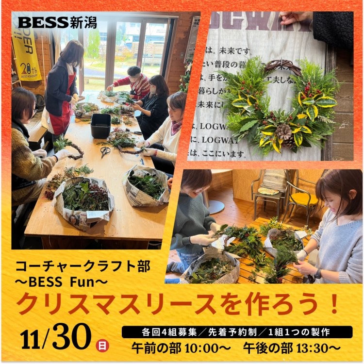 【コーチャークラフト部 BESS Fun~クリスマスリース作り~】BESS新潟のこの時季恒例イベントとなっているクリスマスリース作り。今年も...続きを読む